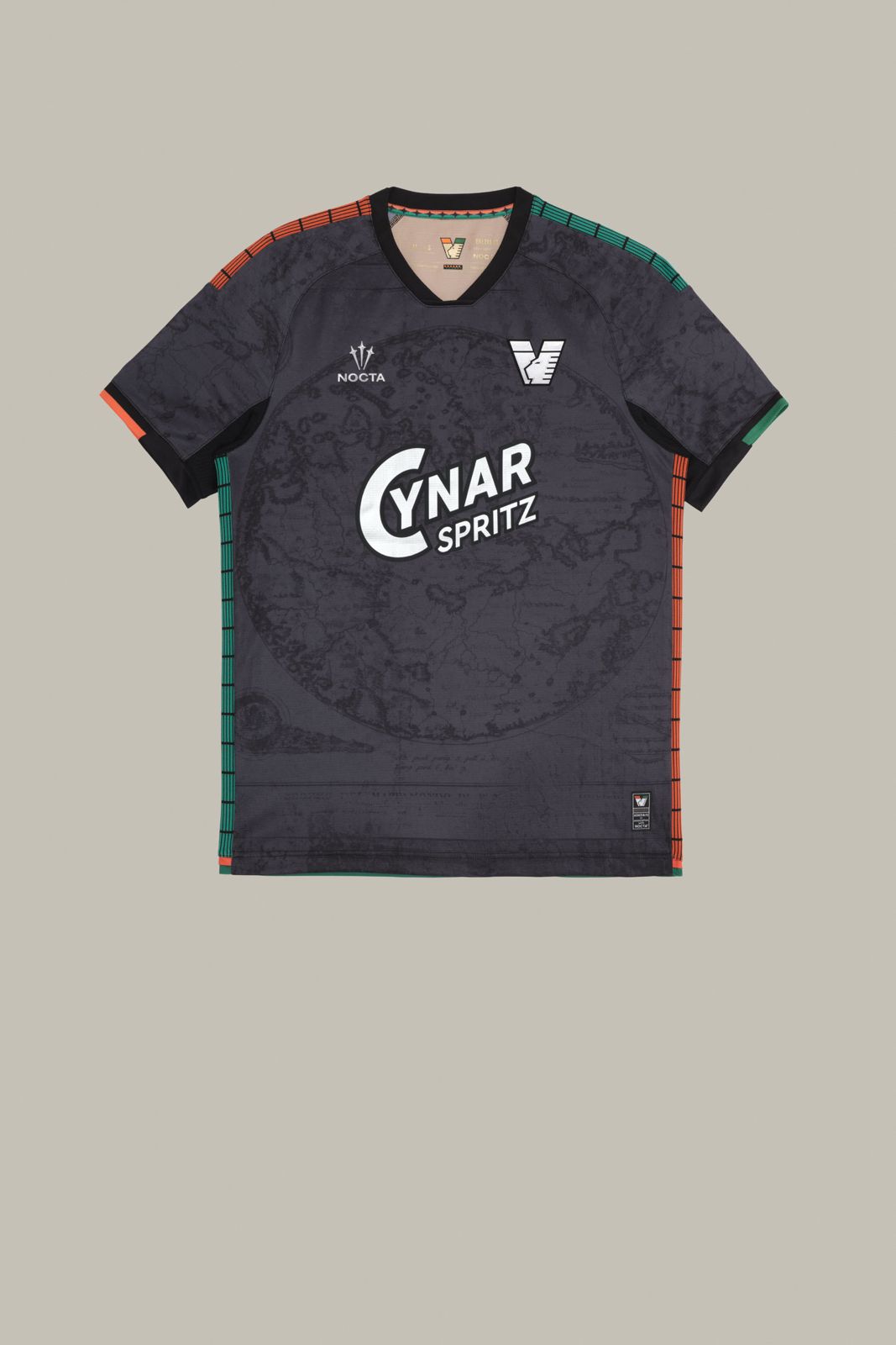 La maglia Home 25/26 si ispira alla cartografia del XV secolo e alla lunga tradizione di Venezia come centro di conoscenza, esplorazione e scambio culturale. La base interamente nera è arricchita da elaborati motivi che richiamano la visione del mondo propria di quell’epoca: un tempo in cui Venezia era considerata una porta verso l’ignoto, una città di idee e un punto di riferimento globale.